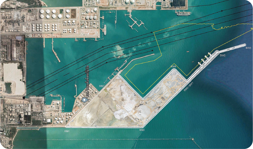 1,415 เมตร ท่าเรือก๊าซ 3 ท่า เทียบเรือบริการ (Jetty) 4 ท่า