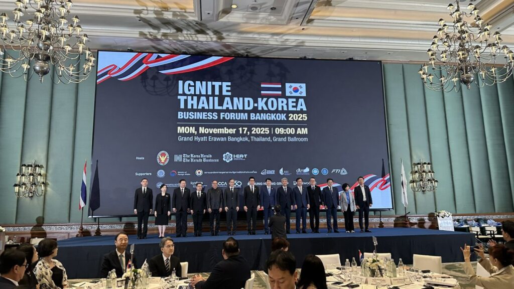On 17 November 2025, Mr. Korkij Danchaivichit, Deputy Secretary-General of the Eastern Economic Corridor Office (EECO), represented the Office at the Ignite Thailand–Korea Business Forum 2025, held under the theme “Strengthening Korea–Thailand Business Cooperation: Strategies and Pathways” at the Grand Hyatt Erawan Bangkok. The forum was co-organized by the Royal Thai Embassy in Seoul and Herald Media Group to enhance bilateral cooperation in trade, investment, and economic strategy between Thailand and the Republic of Korea. The event attracted strong interest from the business community, with more than 500 participants, including several high-level VVIPs from both countries, such as: Mr. Ekniti Nitithanprapas, Deputy Prime Minister and Minister of Finance, Mr. Jung Wonju, Chairman of Daewoo E&C, Herald Media Group, Mr. Lee Hack Young, Deputy Speaker of the National Assembly of Republic of Korea, Ms. Kwon Hye-Jin, Deputy Minister for Trade negotiations at the Trade Minsitry of Korea, Ms. Chotima Lemsawasdikul, Director-General of the Department of Trade Negotiations, and Mr. Narit Therdsteerasukdi, Secretary General of the Board of Investment (BOI).