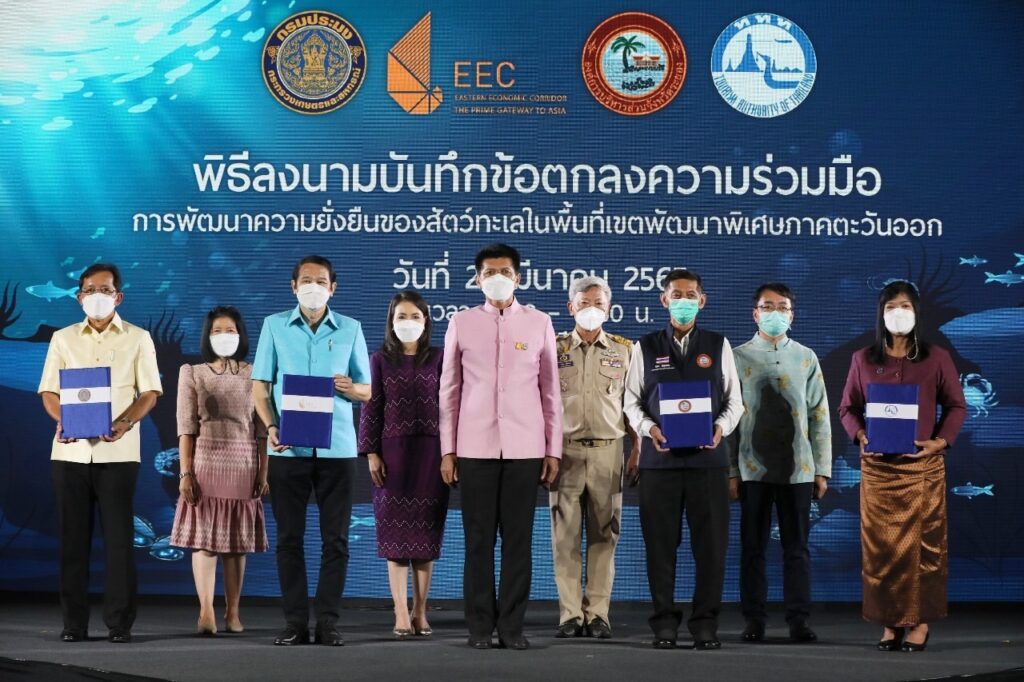 สกพอ. อบจ.ระยอง กรมประมง และ ททท. จับมือดำเนินโครงการฟื้นฟูความอุดมสมบูรณ์ท้องทะเลภาคตะวันออก ผ่านโครงการพัฒนาความยั่งยืนของสัตว์ทะเลในพื้นที่ อีอีซี หนุนศูนย์วิจัยและพัฒนาการเพาะเลี้ยงสัตว์น้ำชายฝั่งระยอง เพื่อสร้างระบบบริหารจัดการการเพาะพันธุ์สัตว์ทะเลอย่างยั่งยืน เพิ่มปริมาณสัตว์ทะเล โดยไม่พึ่งพางบประมาณรัฐ พร้อมสร้างกิจกรรมปล่อยสัตว์ทะเล กระตุ้นการท่องเที่ยวเชิงอนุรักษ์