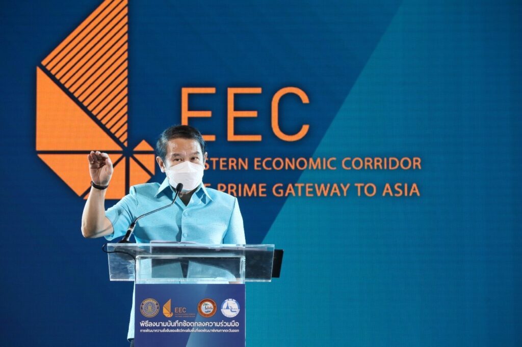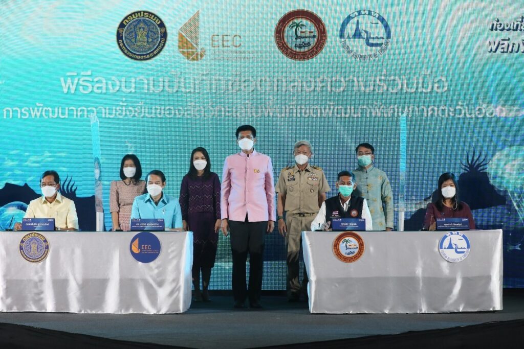 “การลงนามบันทึกข้อตกลงความร่วมมือการพัฒนาความยั่งยืนของสัตว์ทะเลในพื้นที่เขตพัฒนาพิเศษภาคตะวันออกในครั้งนี้ ถือเป็นการบูรณาการความร่วมมือจากหลายหน่วยงาน ได้แก่ สกพอ. กรมประมง ททท. อบจ.ระยอง สภาอุตสาหกรรมการท่องเที่ยวจังหวัดระยอง และ ศูนย์วิจัยฯ ที่นอกจากจะร่วมมือกันพลิกฟื้นท้องทะเลไทยให้กลับมาอุดมสมบูรณ์อีกครั้ง ยังจะช่วยสร้างอาชีพที่มั่นคง และสร้างรายได้ให้กับประชาชนและผู้ประกอบการในพื้นที่ อีอีซี อีกด้วย” เลขาธิการ สกพอ. กล่าว