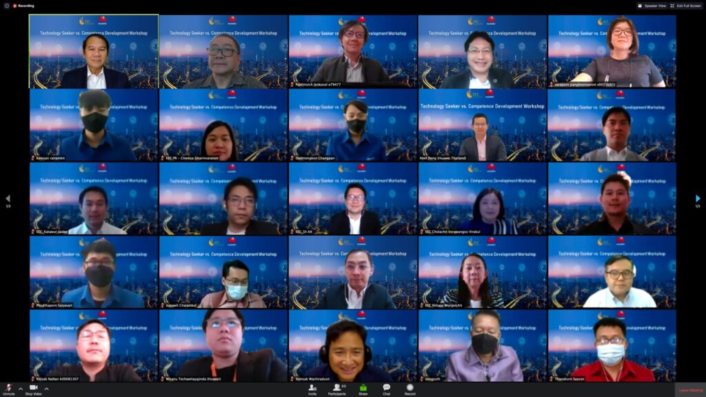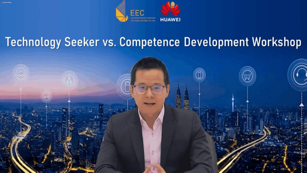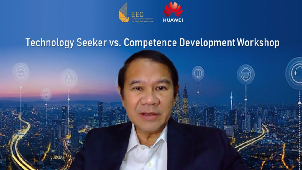 วันนี้ (3 ส.ค.2564) สำนักงานคณะกรรมการนโยบายเขตพัฒนาพิเศษภาคตะวันออก (สกพอ.) หรือ อีอีซี ร่วมกับ และ หัวเว่ย อาเซียน อะคาเดมี (Huawei ASEAN Academy) และม.บูรพา จัดสัมมนาเชิงปฏิบัติการ (work shop) รูปแบบออนไลน์ หัวข้อ“Technology Seeker vs Competence Development Workshop” โดยมี ดร.คณิศ แสงสุพรรณ เลขาธิการ อีอีซี และ นายอาเบล เติ้ง (Mr. Abel Deng) ประธานกรรมการบริหาร บริษัท หัวเว่ย เทคโนโลยี (ประเทศไทย) จำกัด ร่วมเปิดการสัมมนาฯ พร้อมคณะวิทยากรผู้ทรงคุณวุฒิในเทคโนโลยีดิจิทัล 5G มาให้ความรู้ ซึ่งมีผู้เข้าร่วมสัมมนาจำนวนมาก อาทิ ผู้บริหารระดับสูงและผู้ประกอบการในพื้นที่อีอีซี กลุ่มเอสเอ็มอี และกลุ่มสตาร์ทอัพ ที่มีความสนใจต่อการนำนวัตกรรมดิจิทัล 5G เข้ามาผนวกกับการพัฒนาบุคลากร