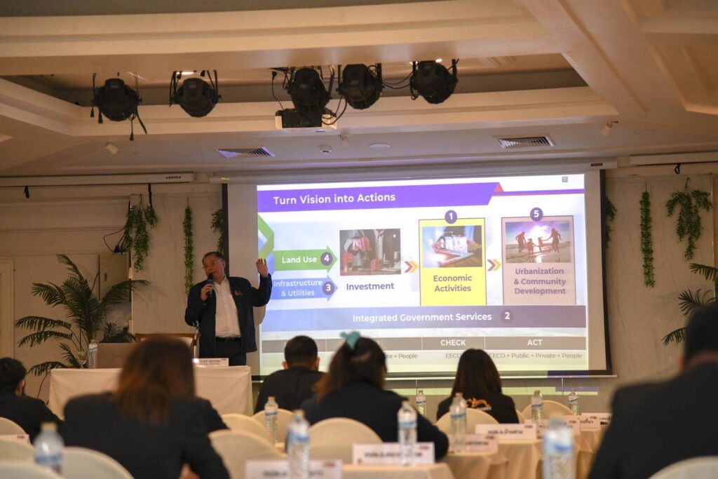 รวมไปถึงการบรรยายพิเศษ หัวข้อ กองทุน EEC : สิทธิประโยชน์และการเข้าถึงสำหรับพี่น้องประชาชน โดย นายพงษ์ศักดิ์ ลิมป์พรพิพัฒน์ รองผู้อำนวยการสำนักกองทุนพัฒนาเขตพัฒนาพิเศษภาคตะวันออก สกพอ. และการบรรยายหัวข้อ เปิดผังเปิดโอกาส : แผนผังการใช้ที่ดินและโครงสร้างพื้นฐานพื้นที่ EEC กับโอกาสของชุมชน โดยนางสาวปานิสรา ดาวเรือง กรมโยธาธิการและผังเมือง