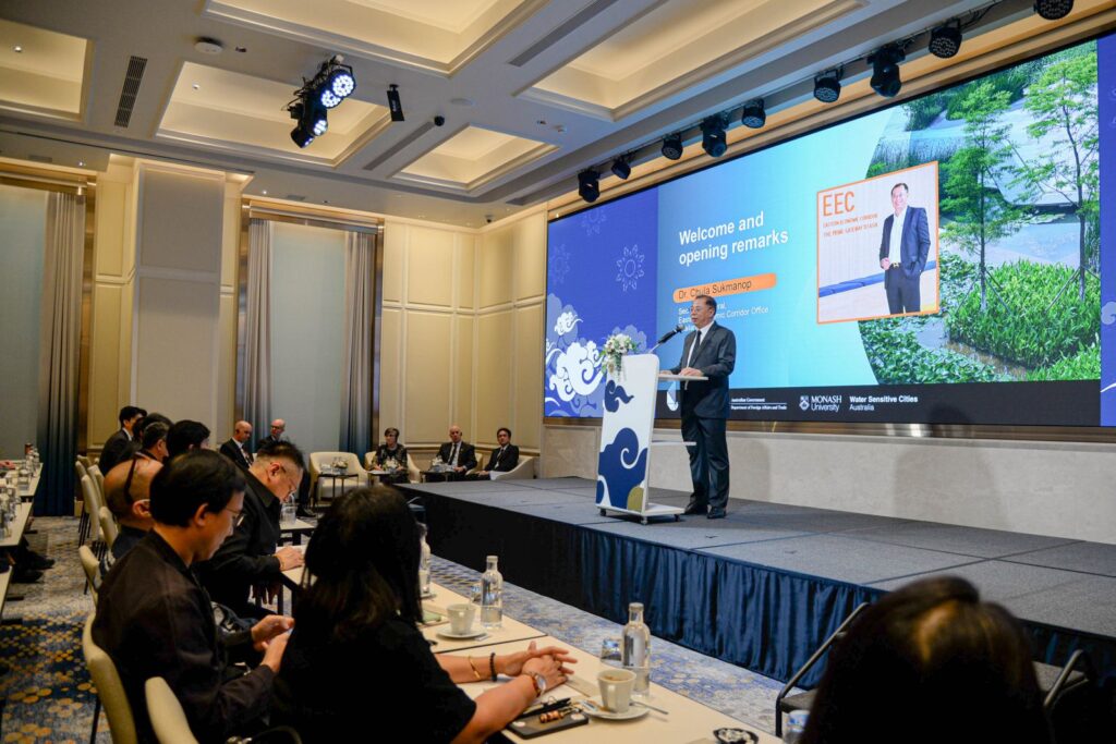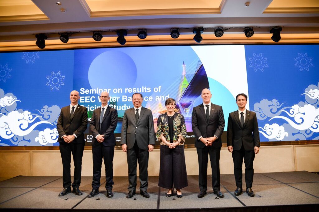 เมื่อเร็ว ๆ นี้ สำนักงานคณะกรรมการนโยบายเขตพัฒนาพิเศษภาคตะวันออก หรือ สกพอ. (EECO) ร่วมกับสถานทูตออสเตรเลีย ประจำประเทศไทย และมหาวิทยาลัยโมนาช ประเทศออสเตรเลีย จัดประชุมเผยแพร่ผลการศึกษาเครื่องมือบริหารจัดการน้ำในพื้นที่อีอีซี (Seminar on Results of EEC Water Balance and Pricing Study) ณ โรงแรมแกรนด์ เซนเตอร์ พอยต์ สุรวงศ์ กรุงเทพฯ โดยมี Dr. Angela Macdonald เอกอัครราชทูตออสเตรเลียประจำประเทศไทย และ ดร.จุฬา สุขมานพ เลขาธิการคณะกรรมการนโยบายเขตพัฒนาพิเศษภาคตะวันออก เป็นประธานเปิดการประชุมฯ และได้กล่าวถึง ความสำคัญของความร่วมมือระหว่างออสเตรเลียและ สกพอ. ในการพัฒนาเครื่องมือการบริหารจัดการน้ำในพื้นที่อีอีซี
