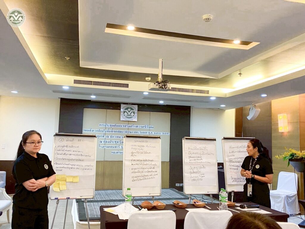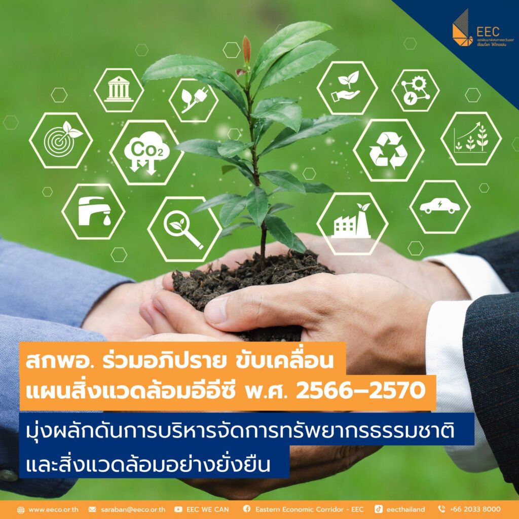เมื่อเร็ว ๆ นี้ นางนวรถ ปะรักมะสิทธ์ ผู้อำนวยการสำนักแผนภาพรวม สำนักงานคณะกรรมการนโยบายเขตพัฒนาพิเศษภาคตะวันออก หรือ สกพอ. (EECO) ได้เข้าร่วมบรรยายในการประชุมสัมมนาเรื่อง “แผนสิ่งแวดล้อมในพื้นที่เขตพัฒนาพิเศษภาคตะวันออก (อีอีซี) พ.ศ. 2566–2570” ณ จังหวัดชลบุรี และผ่านระบบออนไลน์ ซึ่งจัดโดยสำนักงานนโยบายและแผนทรัพยากรธรรมชาติและสิ่งแวดล้อม (สผ.) เพื่อสร้างความเข้าใจแก่หน่วยงานที่เกี่ยวข้อง พร้อมทั้งเปิดเวทีแลกเปลี่ยนความคิดเห็นด้านการบริหารจัดการทรัพยากรธรรมชาติ พื้นที่สีเขียว และสิ่งแวดล้อม โดยมีผู้แทนจากหน่วยงานภาครัฐทั้งส่วนกลางและระดับพื้นที่ ภาคเอกชน และภาคประชาชน เข้าร่วมกว่า 50 คน