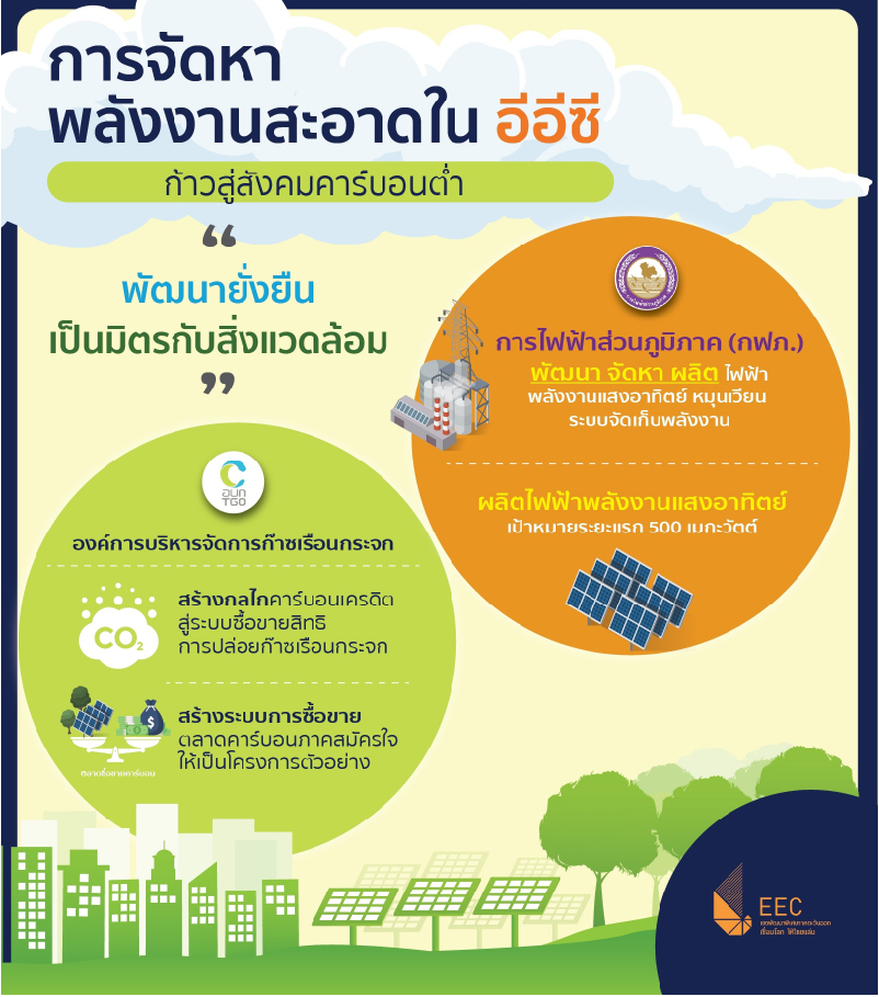 3.)ให้องค์การบริหารจัดการก๊าซเรือนกระจก (อบก.) ออกแบบระบบ วางแผน สร้างกลไกคาร์บอนเครดิต สู่ระบบการซื้อขายสิทธิการปล่อยก๊าซเรือนกระจก และระบบซื้อขายในตลาดคาร์บอนภาคสมัครใจระหว่างผู้ประกอบการในพื้นที่ อีอีซี ให้เป็นโครงการตัวอย่าง