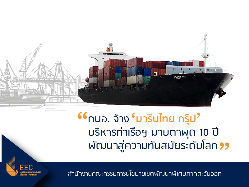 ทั้งนี้ บริษัท มารีนไทย กรุ๊ป จำกัด ประกอบด้วย กลุ่มธุรกิจสถาบันการศึกษาและฝึกอบรมและบริหารจัดการคนประจำเรือ กลุ่มธุรกิจอุตสาหกรรมอู่ต่อ-ซ่อมเรือ อุปกรณ์เรือ และกลุ่มธุรกิจให้บริการรับจ้างเหมาบริหารจัดการท่าเรือสำหรับเรือบรรทุกสินค้าทั่วไป สินค้าน้ำมัน เคมีและแก๊ส รวมถึงการบริหารจัดการระบบคลังเก็บสินค้า ซึ่งเป็นผู้มีความรู้ความเชี่ยวชาญในการบริหารจัดการท่าเรือ มีความพร้อมในการดำเนินการด้านระบบสาธารณูปโภคทางทะเล การบำรุงรักษา รวมถึงเครื่องมืออุปกรณ์และเทคโนโลยีทันสมัย สามารถบริหารจัดการท่าเรือมาบตาพุดให้เป็นท่าเรือชั้นนำระดับโลก และเป็นโครงสร้างพื้นฐานสำคัญสำหรับ EEC โดยเฉพาะโครงการพัฒนาท่าเรือมาบตาพุด ระยะที่ 3 พื้นที่โครงการรวม 1,000 ไร่ มูลค่าโครงการ 55,400 ล้านบาท