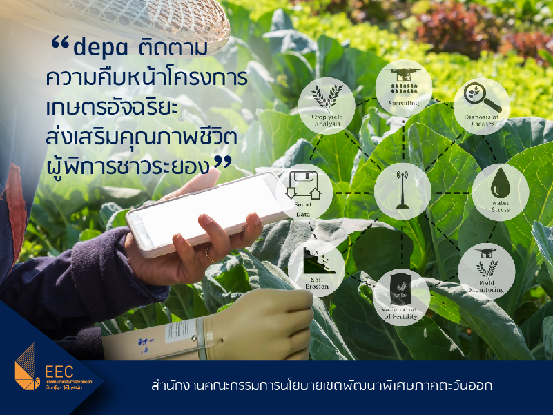 นายวาฤทธิ์ ศิริพิทยาโรจน์ รักษาการผู้อำนวยการฝ่ายส่งเสริมและสนับสนันการพัฒนาชุมชน และตัวแทนสำนักงานสาขาภาคตะวันออก สำนักงานส่งเสริมเศรษฐกิจดิจิทัล (depa) ลงพื้นที่ศูนย์เรียนรู้ฝึกอาชีพการเกษตรเพื่อครอบครัวคนพิการ ตำบลบ้านนา อำเภอแกลง จังหวัดระยอง ติดตามความก้าวหน้าโครงการเกษตรอัจฉริยะส่งเสริมกลุ่มครอบครัวผู้พิการ โดยได้มีการประยุกต์ใช้เทคโนโลยี IoT เพื่อควบคุมระบบการให้น้ำอัตโนมัติ ในพื้นที่แปลงปลูกผัก ทดแทนการใช้แรงงานของผู้พิการ โดยผู้พิการจะใช้เวลาที่เหลือจากการรดน้ำพืชผักในการบุกเบิกพื้นที่สำหรับแปลงปลูกผักให้มากขึ้น ซึ่งจะนำไปสู่การสร้างรายได้เพิ่มให้แก่สมาชิก และพัฒนาคุณภาพชีวิตคนพิการให้มีชีวิตความเป็นอยู่ที่ดีขึ้น ตลอดจนเป็นศูนย์การเรียนรู้ทางการเกษตรแก่ผู้ศึกษาดูงานที่มีเข้ามาเยี่ยมชมอย่างต่อเนื่อง