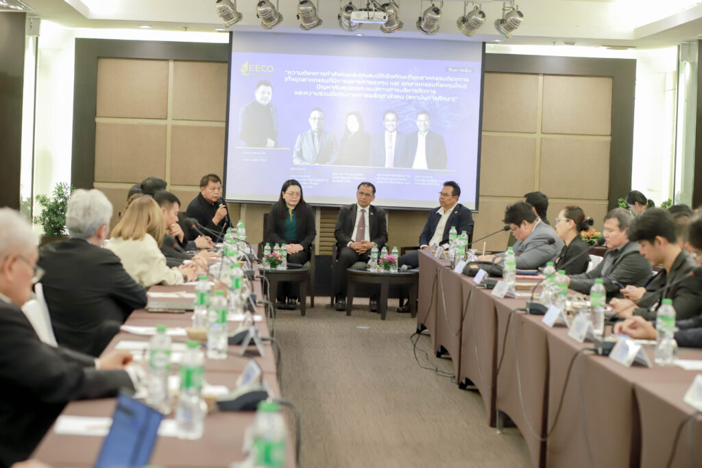 เมื่อวันที่ 23 ก.พ. 2569 สำนักพัฒนากำลังคน สำนักงานคณะกรรมการนโยบายเขตพัฒนาพิเศษภาคตะวันออก (สกพอ.) หรือ EECO ได้จัดประชุมสัมมนาศูนย์เครือข่ายความเชี่ยวชาญการพัฒนาบุคลากรในอุตสาหกรรมเป้าหมาย และผู้บริหารสถานศึกษา เพื่อยกระดับกำลังคนในอุตสาหกรรมเป้าหมาย (EEC Nets) และผู้บริหารสถานศึกษา เพื่อร่วมกำหนดทิศทางการยกระดับกำลังคนรองรับการลงทุนในเขตพัฒนาพิเศษภาคตะวันออก โดยได้รับเกียรติจาก นายก่อกิจ ด่านชัยวิจิตร รองเลขาธิการ สกพอ. กล่าวเปิดงาน พร้อมด้วยนางสาวณิชากร ทองเปลว ผู้อำนวยการสำนักพัฒนากำลังคน สกพอ. กล่าวรายงานแนวโน้มความต้องการแรงงานในระยะ 5 ปี