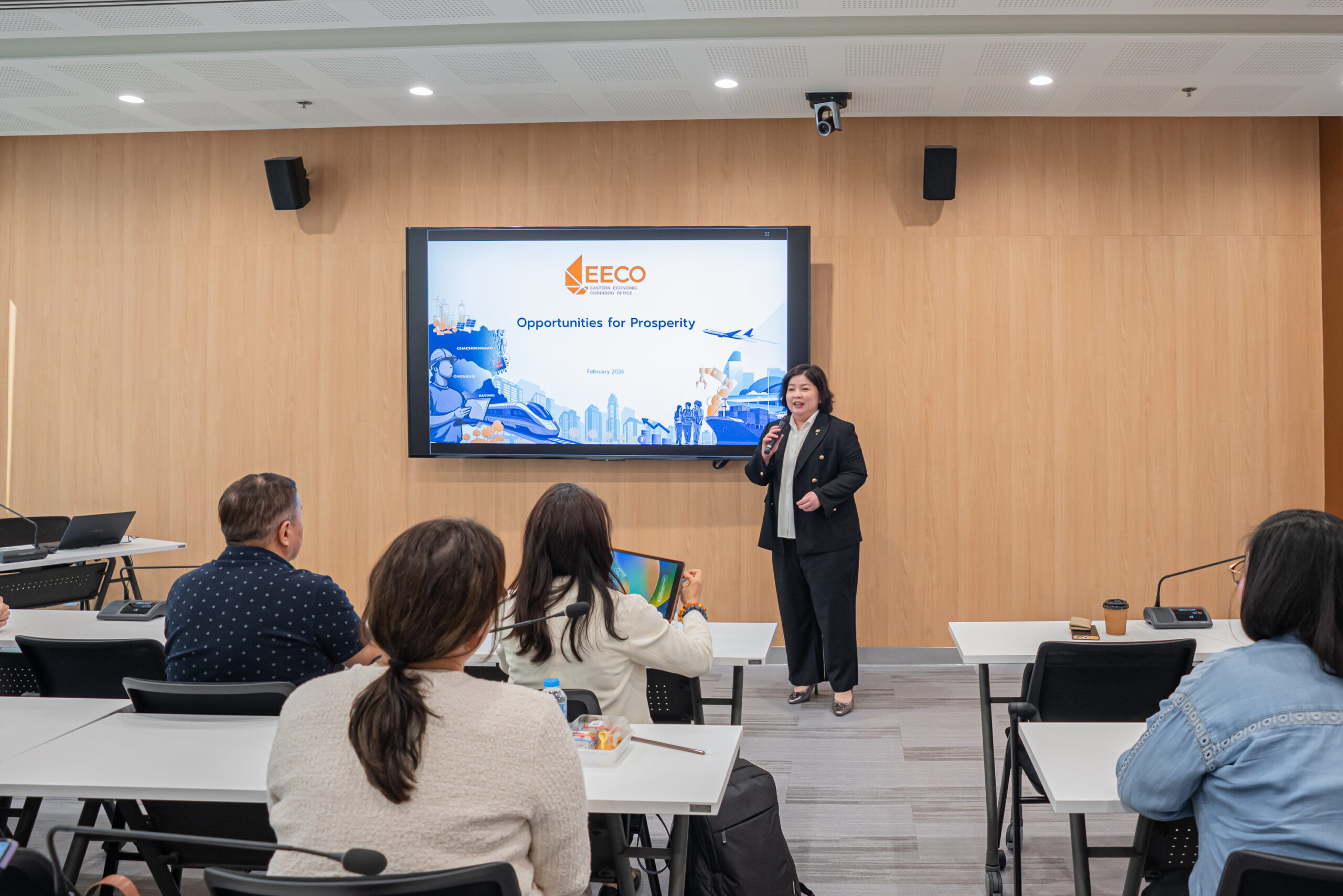 พร้อมกันนี้ ดร.ชลจิต วรวังโส วีรกุล  และ นางอภิชยา ศรีคชา ผู้อำนวยการสำนักอุตสาหกรรมบริการและการแพทย์ ได้บรรยายในหัวข้อ “Understanding the EEC’s role in fostering economic integration and trade facilitation” เพื่ออธิบายภาพรวมการพัฒนาพื้นที่ EEC การเตรียมความพร้อมด้านโครงสร้างพื้นฐาน และการเชื่อมโยงเศรษฐกิจไทยสู่ภูมิภาคและตลาดโลกอย่างมีประสิทธิภาพ