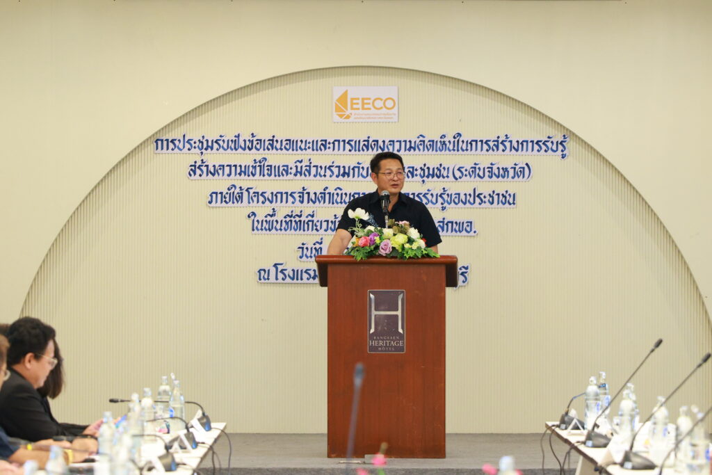 โดย EECO จะให้ความสำคัญกับการสร้างความเข้าใจและการมีส่วนร่วมจากประชาชนในพื้นที่ ผ่านการสื่อสารอย่างต่อเนื่อง และเปิดโอกาสให้ทุกภาคส่วนสามารถ แสดงความคิดเห็น เสนอแนะ และมีส่วนร่วมในทุกขั้นตอนของการพัฒนา เพื่อให้การเติบโตทางเศรษฐกิจเกิดขึ้นควบคู่กับความเข้มแข็งของชุมชน การจัดประชุมในครั้งนี้ จึงถือเป็นอีกก้าวสำคัญของการขับเคลื่อนนโยบายอีอีซีเพื่อชุมชน ที่มุ่งให้ประชาชนในพื้นที่ได้รับรู้ เข้าใจ และสามารถกำหนดทิศทางการพัฒนาพื้นที่ของตนเอง อันจะนำไปสู่การเติบโตอย่างสมดุล ยั่งยืน