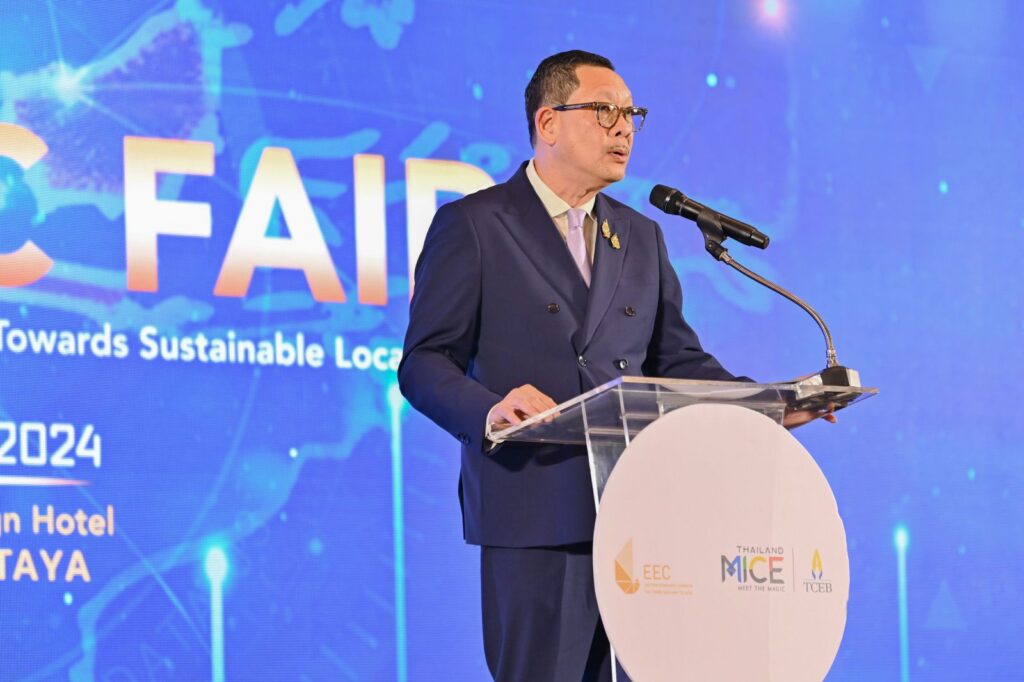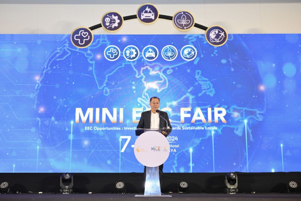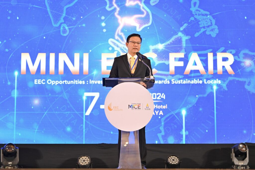 เมื่อวันที่ 8 ตุลาคม 2567 – สำนักงานส่งเสริมการจัดประชุมและนิทรรศการ (องค์การมหาชน) หรือ ทีเส็บ ร่วมกับสำนักงานคณะกรรมการนโยบายเขตพัฒนาพิเศษภาคตะวันออก (อีอีซี) หรือ สกพอ. จัดงาน Mini EEC Fair 2024 ระหว่างวันที่ 8-9 ตุลาคมนี้ ชูแนวคิด “EEC Opportunities: Investment Solutions Towards Sustainable Locals” ตั้งเป้าดึงเม็ดเงินลงทุนในกลุ่มอุตสาหกรรมยุทธศาสตร์แห่งอนาคตเพื่อร่วมขับเคลื่อนเศรษฐกิจไทย ณ โรงแรมเดอะซายน์ พัทยา จังหวัดชลบุรี มีผู้เข้าร่วมงานมากกว่า 2,500 คนจากทั้งในและต่างประเทศ