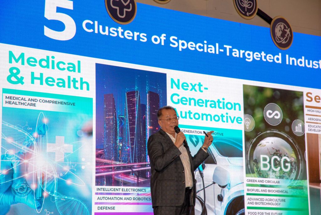 ในช่วงบ่าย มีการนำเสนอหัวข้อ “5 Clusters Business Opportunities: Status/Eco System/New Trend” ครอบคลุมโอกาสทางธุรกิจใน 5 กลุ่มอุตสาหกรรมเป้าหมาย ได้แก่ ยานยนต์ไฟฟ้า ดิจิทัล BCG การแพทย์ และอุตสาหกรรมบริการ โดยผู้อำนวยการจากสำนักต่าง ๆ ของ สกพอ. การนำเสนอนี้ได้เผยให้เห็นถึงสถานะปัจจุบัน ระบบนิเวศ และแนวโน้มใหม่ของแต่ละอุตสาหกรรม