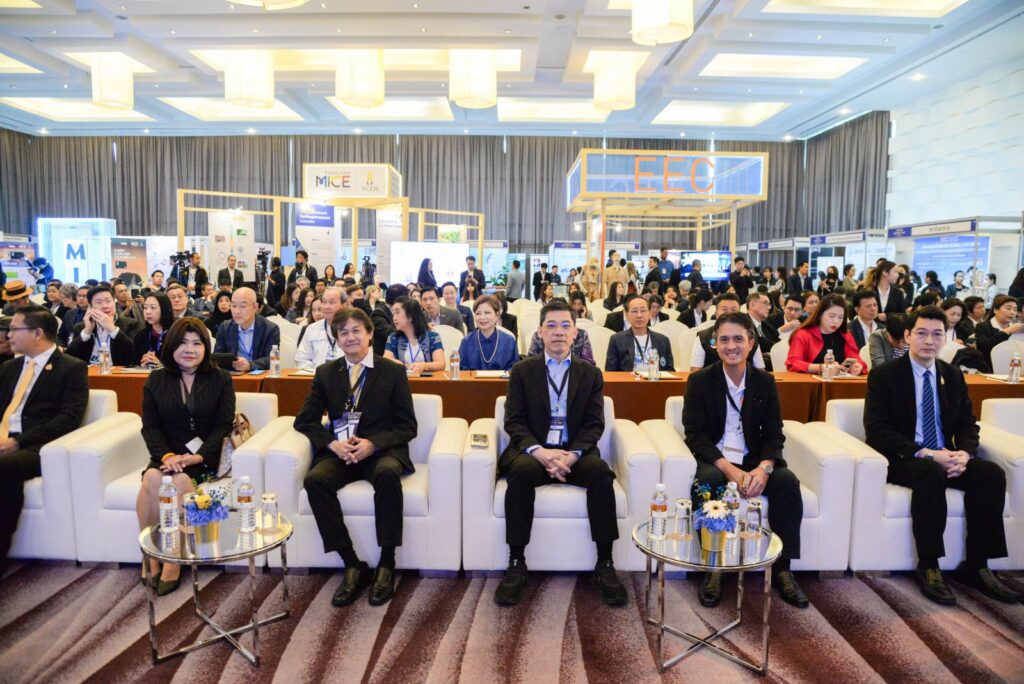 นอกจากนี้ ยังมีการนำเสนอแนวคิด “EEC Medical & Wellness Hub for the Future” ซึ่งมุ่งสร้างศูนย์กลางด้านการแพทย์และสุขภาพในพื้นที่ EEC ให้ก้าวสู่ระดับโลก โดยเน้นการพัฒนาโครงสร้างพื้นฐานด้านสาธารณสุข การส่งเสริมนวัตกรรมทางการแพทย์ และการยกระดับคุณภาพการบริการด้านสุขภาพ เพื่อรองรับทั้งผู้ป่วยในประเทศและนักท่องเที่ยวเชิงการแพทย์จากทั่วโลก พร้อมมีการนำเสนอผลงานนวัตกรรมด้านการแพทย์และสาธารณสุขจากสถาบันการศึกษาชั้นนำในภาคตะวันออก และการเสวนาเกี่ยวกับการพัฒนาทรัพยากรมนุษย์เพื่อรองรับการเติบโตของ EEC