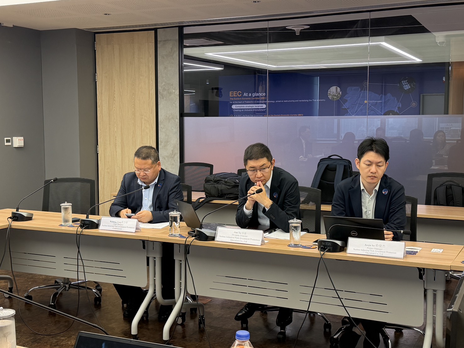 EEC รวมถึงสิทธิประโยชน์สำหรับนักลงทุน พร้อมทั้ง SIP ยินดีที่จะสนับสนุนและส่งเสริมการเผยแพร่ข้อมูล รวมถึงสร้างการรับรู้เกี่ยวกับโอกาสการลงทุนในพื้นที่ EEC ให้แก่นักลงทุนในเขต SIP ที่มีศักยภาพและมีความสนใจลงทุนในต่างประเทศ ซึ่งถือเป็นการเชื่อมโยงทางเศรษฐกิจระหว่างพื้นที่ EEC กับ SIP นอกจากนี้ ทั้งสองฝ่ายได้ร่วมแลกเปลี่ยนข้อคิดเห็นและมุมมองเกี่ยวกับแนวทางการส่งเสริมความร่วมมือในอุตสาหกรรมเป้าหมายสำคัญ อาทิ อุตสาหกรรมเคมี อุตสาหกรรมการแพทย์ พลังงานใหม่ ปัญญาประดิษฐ์ บริการสมัยใหม่ และอุตสาหกรรมการผลิตขั้นสูง (High-end Manufacturing) ซึ่งมีความสอดคล้องกับทิศทางและยุทธศาสตร์การพัฒนาอุตสาหกรรมเป้าหมายของเขตพัฒนาพิเศษภาคตะวันออก